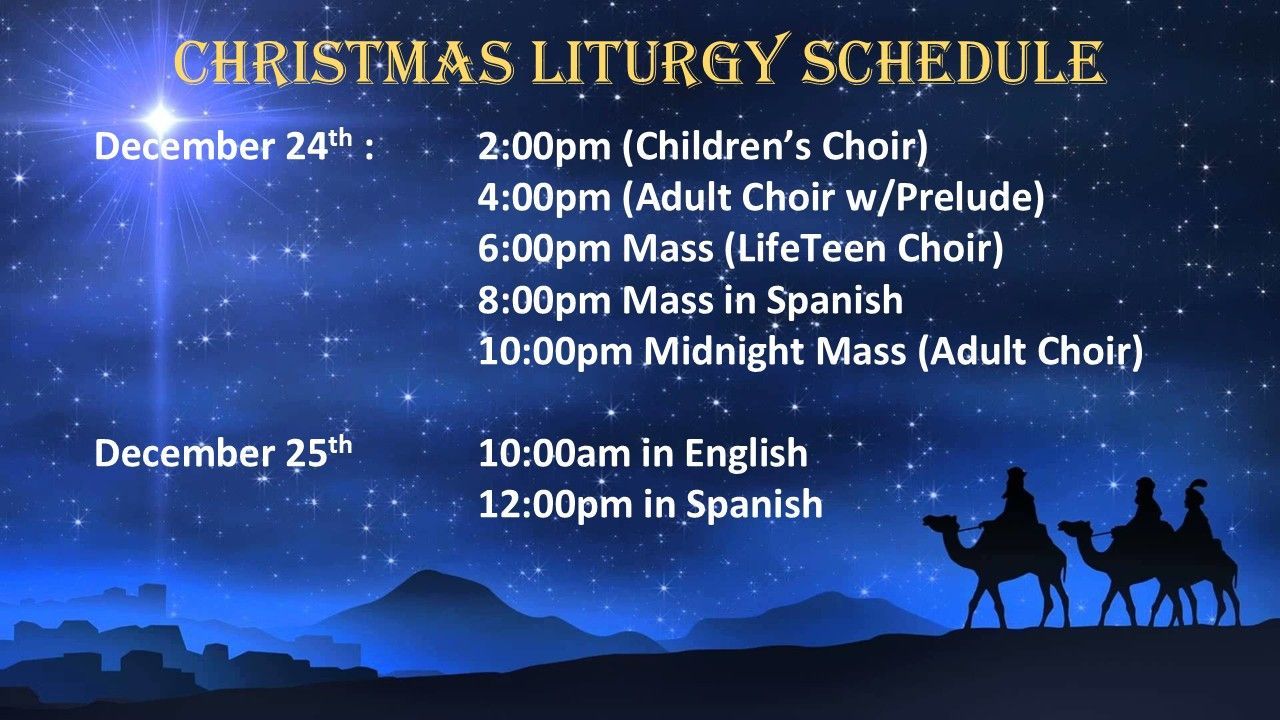 8:00am, 9:30am, 11:15am, 1:15pm in Spanish and 5:00pm LifeTeen