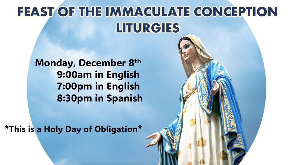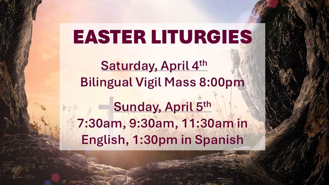 Saturday Vigil Mass 5:00pm in English; 7:00pm in Spanish