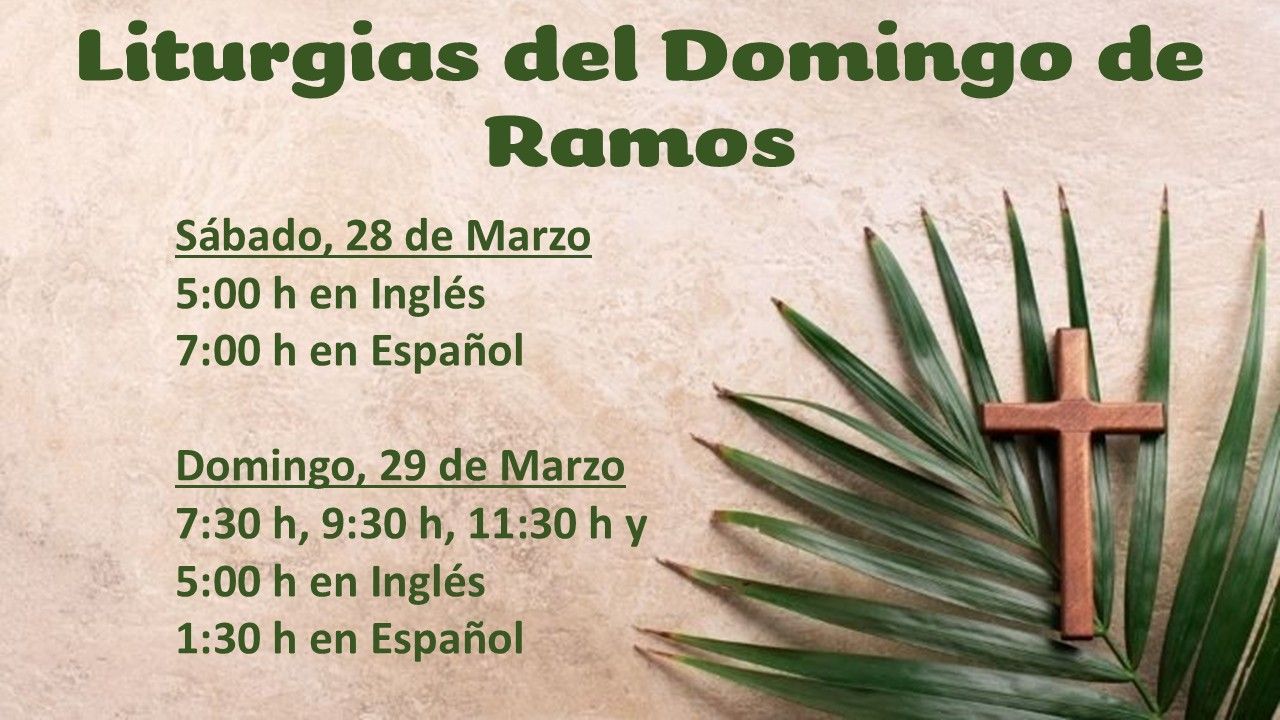 11:15am and 5:00pm in English 1:15pm Mass in Spanish